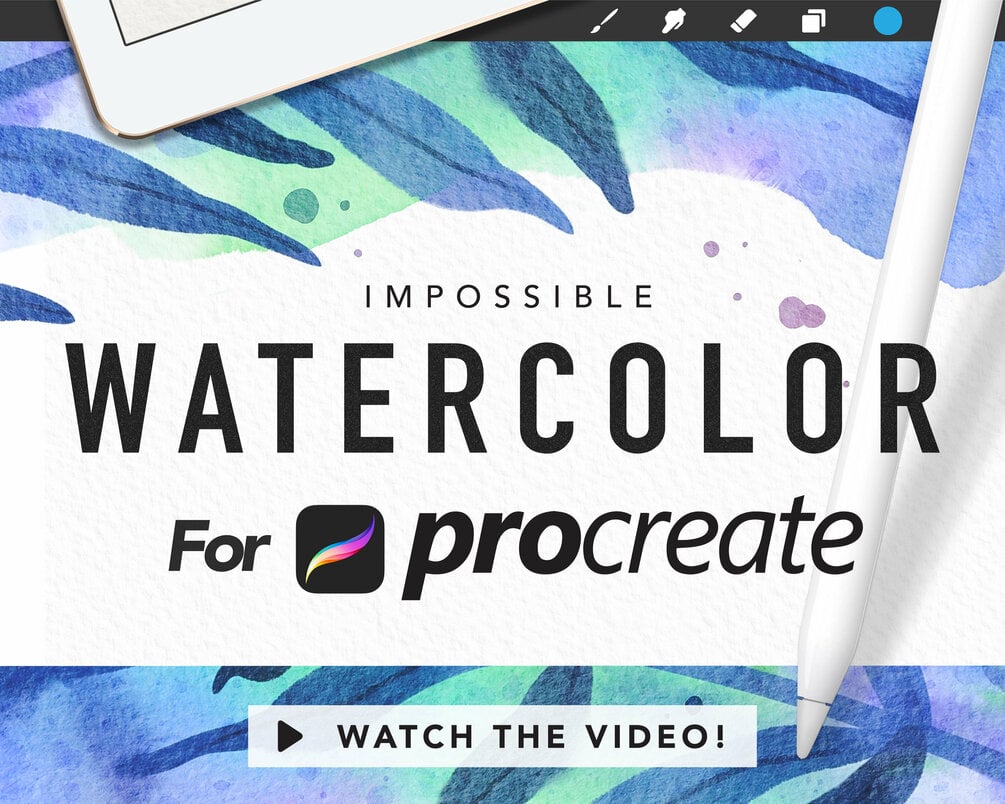 Watercolor for Procreate is an addon that lets you paint watercolor just like the real thing! An amazing, realistic system for texture and authentic brushes are included with tutorial videos and even a bonus brush set. All you need is Procreate 5.0.8 or 5X, an iPad, and an Apple Pencil.